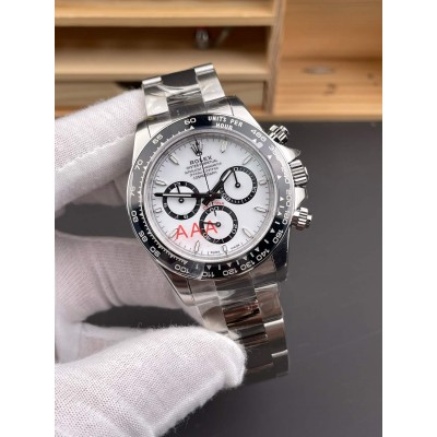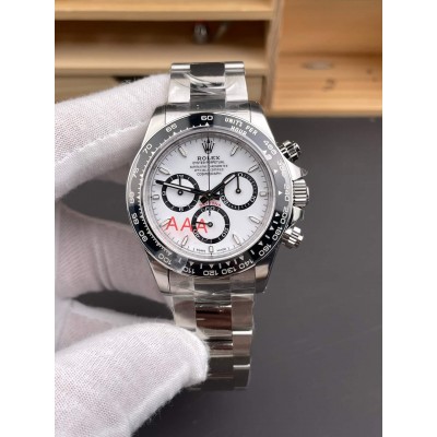 The Rolex Replica Cosmograph Daytona Watch 126500LN-0001, also known as the "Panda," is manufactured by the VS factory and features super clone quality. It has a 40mm case crafted from 904L stainless steel, a 4131 movement, and a sapphire crystal. The bezel is constructed from black ceramic, and the white dial. The luxury watch is fitted with an Oyster stainless steel strap and has the functions for a chronograph (hours, minutes, seconds), hours, minutes, and seconds.